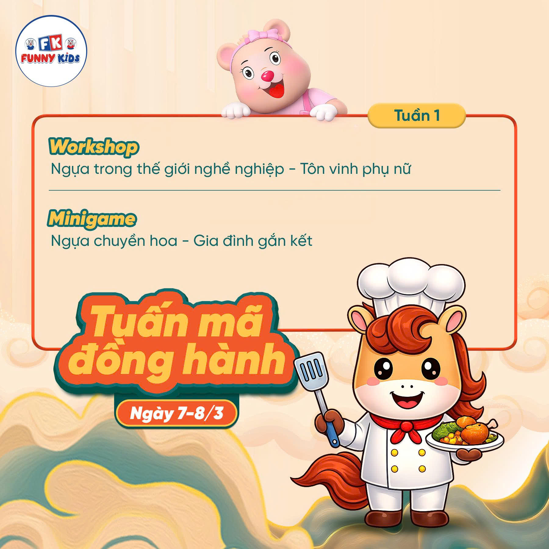 Tháng 3 mang theo nguồn năng lượng mới, là thời điểm lý tưởng để các bé bắt đầu hành trình khám phá và bứt phá bản thân. Tại Funny Kids, chuỗi chương trình ngoại khóa và workshop chủ đề “Tuấn Mã Đồng Hành” được thiết kế như một đường đua đầy màu sắc – nơi mỗi bé là một “chiến mã nhí” tự tin, mạnh mẽ và giàu yêu thương.